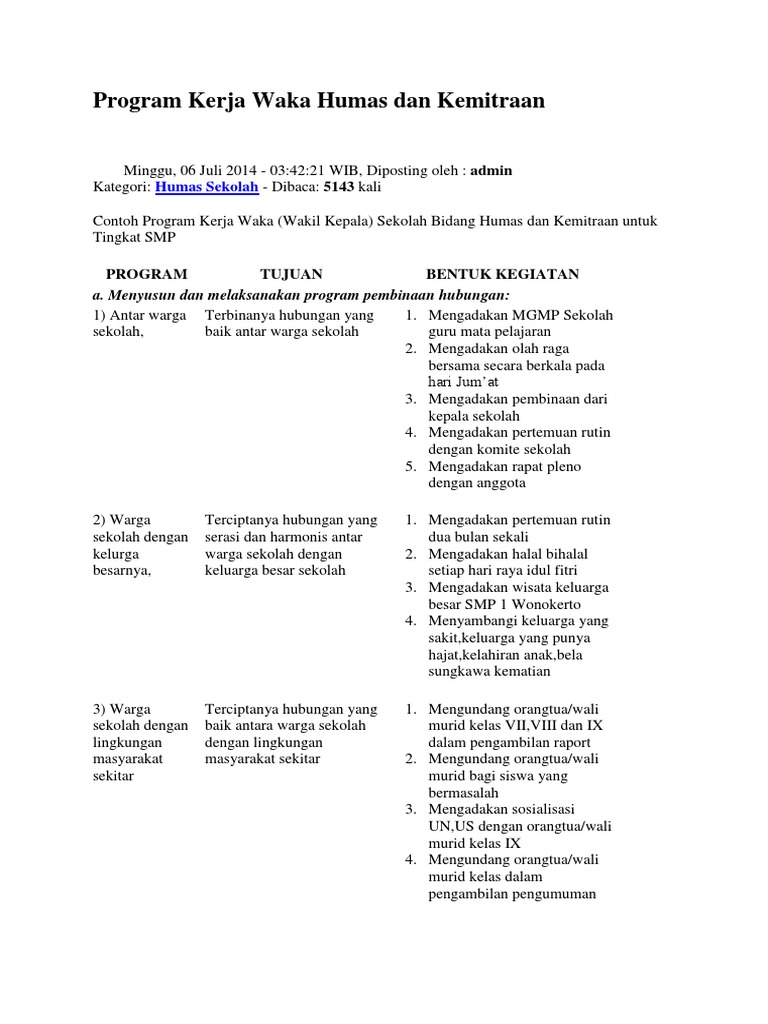 Download Program Kerja Waka Humas Dan Kemitraan Kepalasekolah Org