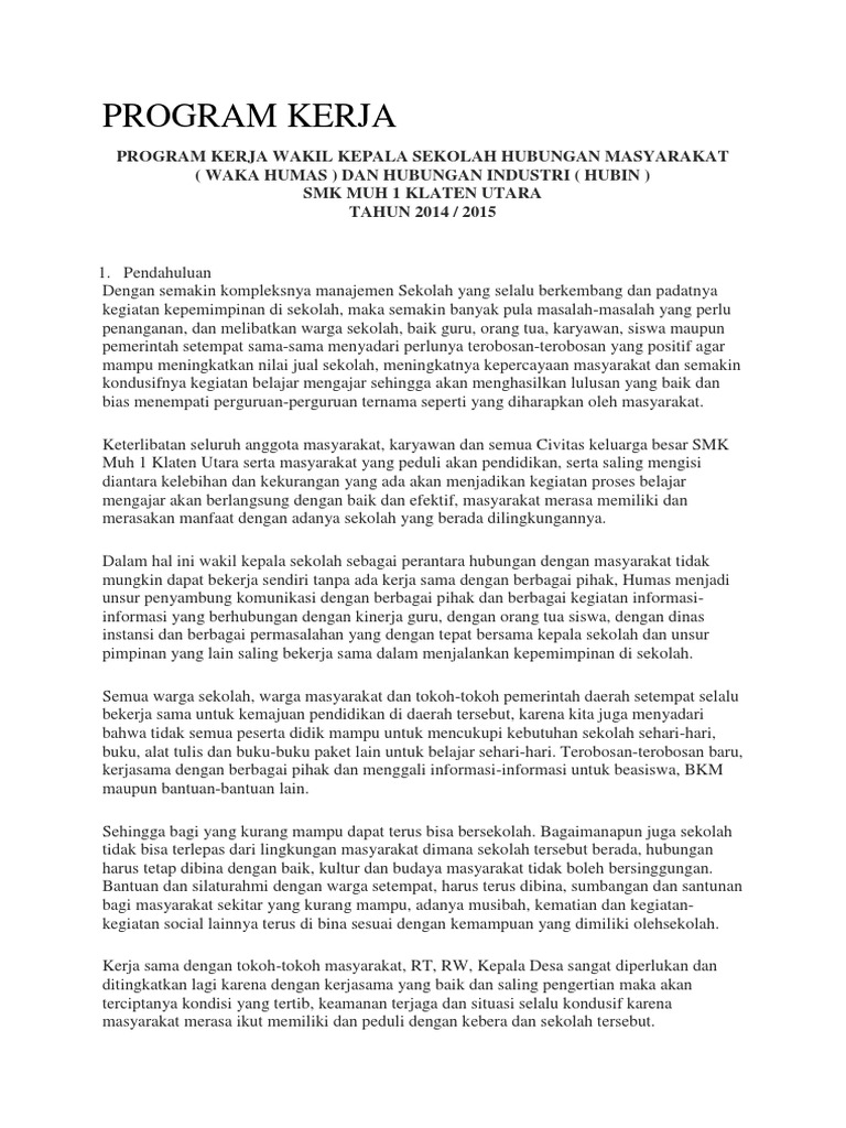 Program Kerja Wakil Kepala Sekolah Urusan Hubungan Masyarakat Humas Smp Sma Klik File Pendidikan