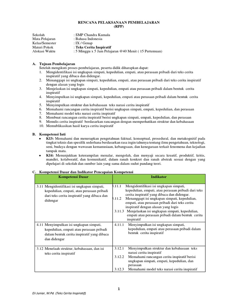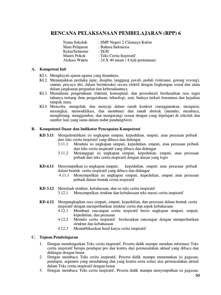 Menelaah cerita inspiratif rpp 1 lembar bahasa indonesia kelas ix revisi daftar isi tampil bahasa indonesia pada kesempatan kali ini admin akan membagikan perangkat pembelajaran rencana pelaksanaan pembelajaran rpp 1 lembar teks cerita inspiratif dalam mata pelajaran bahasa indonesia kelas 9 revisi terbaru. Orientasi pada bagian orientasi dapat dikembangkan dengan menggunakan deskripsi latar pengenalan tokoh dan pengenalan konflik. Menelaah variasi pengungkapan struktur cerita pengembangan struktur bisa dilakukan dalam berbagai pola.